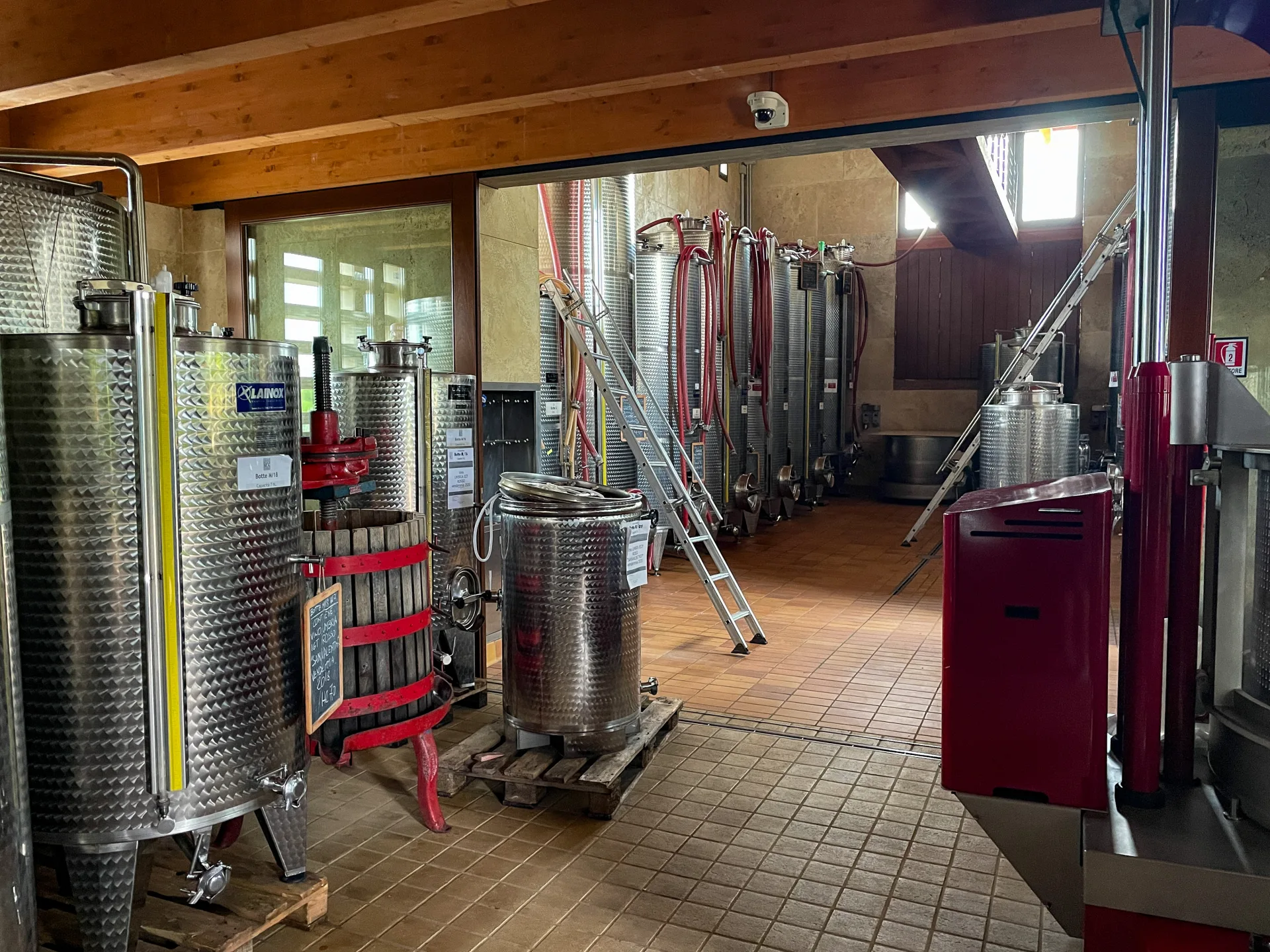 Bea lets every fermentation lot take its own sweet time to complete fermentation, most of which do so within a couple of weeks. Anything that seems unusually sluggish he will move into conical wood vats usually reserved for aging, counting on the aeration of movement and the warmth of the wood to jump-start any flagging yeasts.